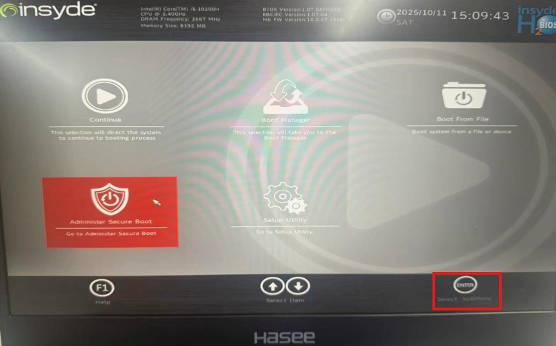 Step 1. In the BIOS interface, locate and select "Select SubMenu".