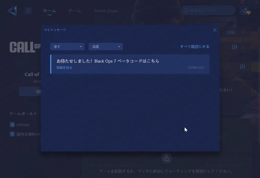 - イベント期間中、GearUPで Call of Duty® を10秒以上最適化すると (イベント期間中は無料、会員登録不要)、自動的にコード配布リストに登録されます。